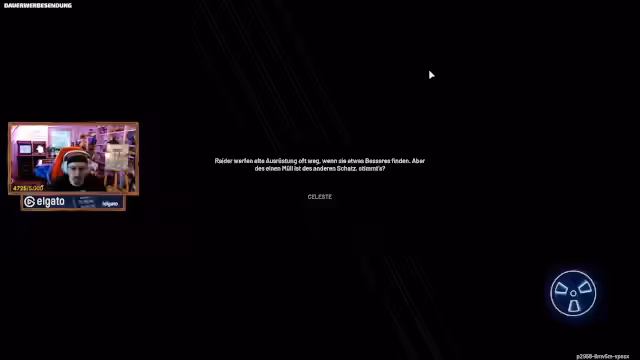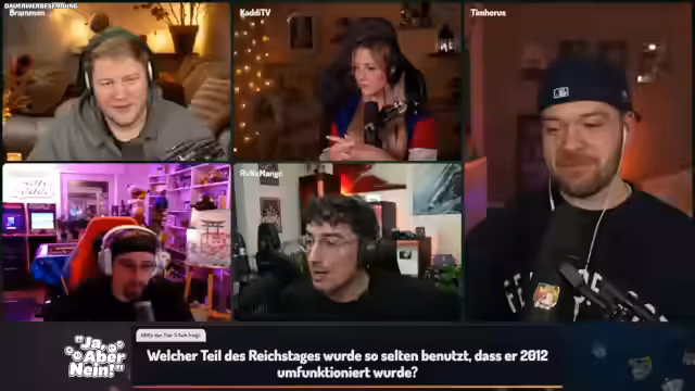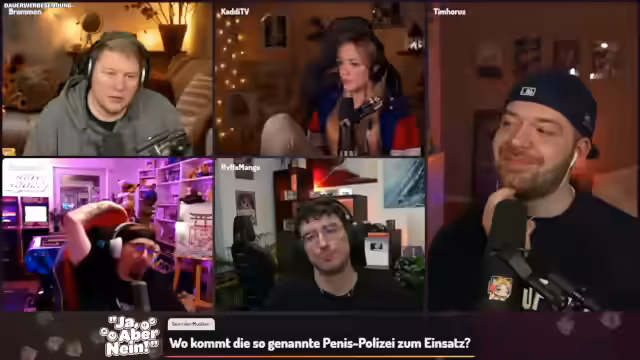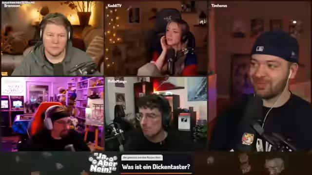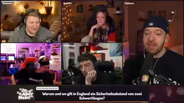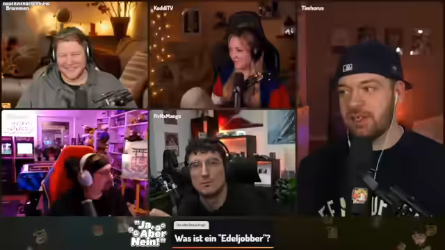 06:33:00Nachdem der Streamer den zweiten Platz in einer Challenge belegt hat, äußert er seine Frustration über das unaufgeräumte Lager im Spiel und den Wunsch, wieder PvP spielen zu können, ohne auf solche „Kacke“ achten zu müssen. Kurz darauf begrüßt er Tim Horus, der sich auf die gemeinsame Runde „Genial daneben“ freut und die „coole Crew“ mit Brahmin, Kadi, Dalu und Mango hervorhebt. Tim erwähnt scherzhaft, dass er Dalu in Japan einen Fleckmon-Code besorgt hat. Währenddessen treten technische Probleme auf: Cloudflare war kurzzeitig ausgefallen, und Tim hat Schwierigkeiten mit seiner Kamera, die unscharf ist, und seinem Mikrofon, das sich automatisch leiser stellt. Er erinnert sich, dass er das Problem bereits in der letzten Show behoben, sich die Lösung aber nicht notiert hat. Die Teilnehmer versuchen, die Audio- und Videoeinstellungen zu optimieren, während sie die bevorstehende Show vorbereiten und über die Bedeutung von „Bramegao“ sprechen, einem Wortspiel, das in den Chat übernommen wurde.