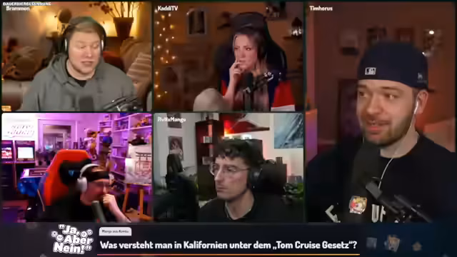 07:56:19Die letzte Frage drehte sich um das „Tom Cruise Gesetz“ in Kalifornien. Zunächst wurde spekuliert, ob es mit Scientology, seinen Filmen oder seiner Rolle als Stuntman zu tun hat. Es wurde geklärt, dass das Gesetz nicht von Tom Cruise initiiert wurde, sondern wegen ihm verabschiedet wurde, aufgrund einer Begebenheit in seinem echten Leben. Die Diskussion bewegte sich von Theorien über Doppelgänger und Stunt-Versicherungen bis hin zu absurden Ideen wie einem Verbot, Kinder Tom Cruise zu nennen. Schließlich wurde angedeutet, dass es etwas mit einem Arzt oder einem medizinischen Kontext zu tun hat, aber nicht mit Schönheit oder Verletzungen. Die Gruppe kam der Lösung nahe, indem sie über Schwangerschaftstests und deren Zuverlässigkeit nachdachte, inspiriert von einer fiktiven Geschichte über Tom Cruise und Katie Holmes. Die genaue Auflösung des „Tom Cruise Gesetzes“ wurde jedoch nicht vollständig gegeben, da die Zeit abgelaufen war, aber die Richtung war klar: Es handelt sich um ein Gesetz, das aufgrund eines persönlichen Vorfalls oder einer Erfahrung von Tom Cruise im medizinischen Bereich in Kalifornien verabschiedet wurde, um eine bestimmte Situation zu regulieren oder zu verhindern, dass sich diese wiederholt.