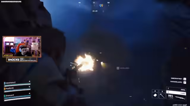 01:53:11Der Streamer hat einen Kampf mit mehreren Gegnern, einschließlich Rocketeers. Er erwähnt, dass seine Munition langsam zur Neige geht und er plant, sich neu zu bewaffnen. Er und sein Team überleben den Angriff und verfolgen das Ziel, einen Rocketeer zu töten. Er beschreibt den Kampfverlauf und die Entscheidungen, die er während des Gefechts trifft, einschließlich des Werfens von Wolfpacks und des Schießens auf Gegner.