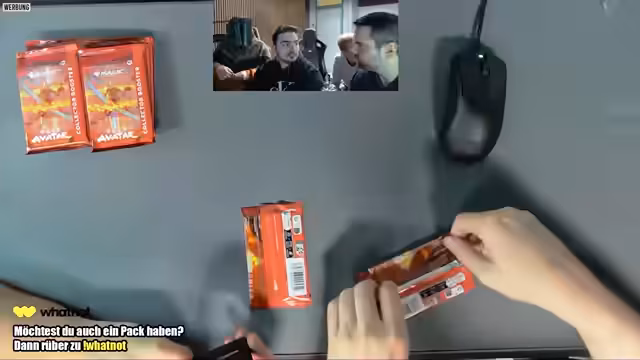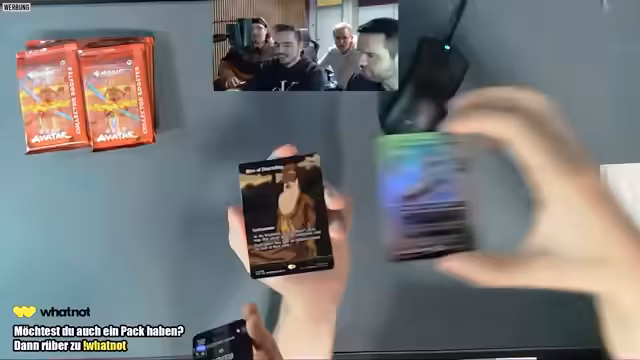 00:47:16Mit Gästen (Armin und Bernie) wird das Magic: The Gathering Collector-Display des Avatar-Sets geöffnet. Dieses Set wird als hochwertig und teuer beschrieben (ca. 300€ pro Display). Der Fokus liegt auf den speziellen Artworks und der Verbindung zur Avatar-Serie. Es werden Tipps für vorsichtiges Öffnen gegeben, um mögliche wertvolle Karten wie serialized Cards nicht zu beschädigen.
