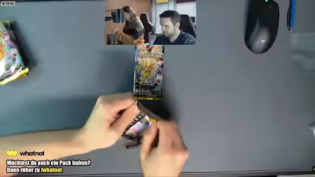 00:14:07Nach jedem geöffneten Booster-Pack wird auf Whatnot ein neues Giveaway für Zuschauer gestartet, bei dem randomisierte Booster gewonnen werden können. Zusätzlich laufen Auktionen für geöffnete Karten oder ganze Displays. Es wird erklärt, dass alle Karten, die als Auktionen auf Whatnot angeboten werden, live geöffnet werden, während über den Sofortkauf erworbene Sets versiegelt nach Hause geschickt werden.