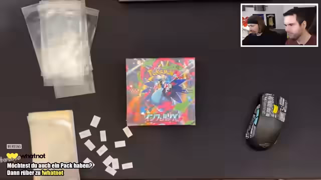 00:54:56Das Pokémon Opening wird fortgesetzt. Die nächsten drei Packs enthalten Mega-Entwicklungskarten. Anschließend wird das japanische Bundle geöffnet und es wird angekündigt, dass auch One Piece Karten präsentiert werden werden. Für einen zukünftigen gemeinsamen Stream wird das Thema Giveaways angesprochen, die auch für Nicht-Käufer zugänglich sein sollen.