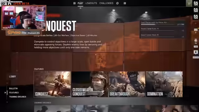 07:46:48Nach einer durchschnittlichen Performance im Conquest-Modus ist der Streamer mit seiner Platzierung in der Rangliste unzufrieden, was ihn jedoch nicht weiter stört. Er beschließt, den Spielmodus zu wechseln und einen weiteren Rush-Spielzug zu machen, bevor die Session endet. Das Team bespricht die Möglichkeit, einen weiteren Durchgang zu spielen, jedoch nur für kurze Zeit. Der Streamer gibt zu, dass seine Leistung nicht perfekt war, aber es für den Spaß im Team in Ordnung war.