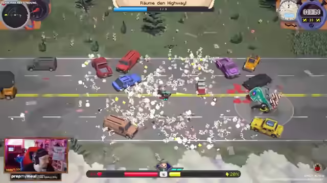 04:56:50Dhalucard wollte eigentlich noch auf etwas Kleines reagieren, entscheidet sich aber für "Deadly Days Road Trip". Er stellt fest, dass er in Shakes noch einen Legendary Dungeon offen hat. Sein Headset hat Akkuprobleme, was erstaunlich ist, da es normalerweise zwei Tage hält. Er fragt sich, woran er Benzin auf der Map erkennt und findet Schuhe, die eine Feuerspur hinterlassen. Er überlegt, ob er noch farmen soll, solange er überleben kann, um Level-Ups zu bekommen. Er erklärt, dass der offizielle Release von "Deadly Days Road Trip" noch nicht stattgefunden hat, sondern nur Early Access Versionen an Creator verschickt wurden. Er findet eine Schrotflinte und fragt sich, ob er sich mit der 1 heilt oder ob er nur 1 davon hat. Er sucht dringend Benzin und findet einen Staubsauger, der EP im Level aufsaugt. Er wundert sich, warum es keinen Aufschrei wegen des Staubsaugers gab, da es ein Gigant-Cheat ist. Er überlegt, wie das mit dem Lager funktioniert und stellt fest, dass er die Items erst reparieren muss, um sie verwenden zu können.