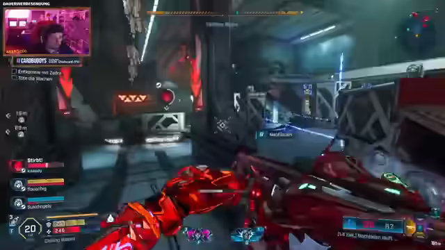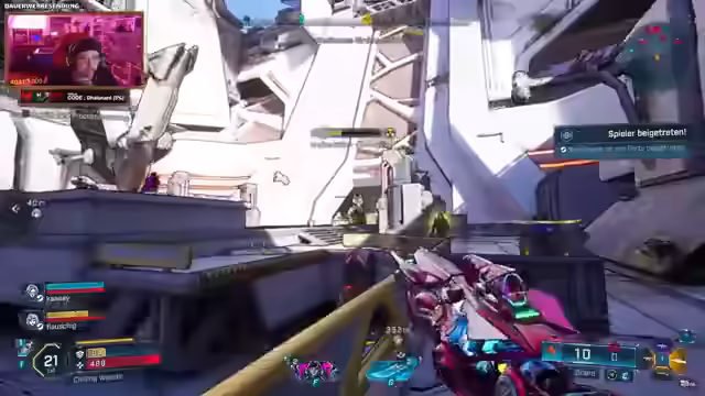 07:35:19Die Gruppe kämpft gegen einen riesigen Hund und nutzt Gravitationseffekte zur Kontrolle. Ein Spieler macht mit seiner Granate hohen Schaden und benötigt Munition. Die Gruppe portet sich zur Not. Ein Spieler stirbt fast und stellt fest, dass die Gegner gut austeilen. Die Spieldauer wird auf 22 oder 23 Uhr festgelegt, da ein Spieler sich auf einen IRL-Stream vorbereiten muss. Eine versteckte Waffenkiste wird gefunden. Ein Bosskampf steht bevor, und ein Spieler gibt Anweisungen, wie man in ein Loch springt. Es wird diskutiert, ob die Skills zum Sniper passen. Ein Spieler hatte einen Disconnect während eines Dialogs. Ein Spieler findet einen Revolver und eine Lilane Sniper. Es wird über First Shot Sniper und Munitionsprobleme diskutiert. Das Spielgefühl wird als besser als im dritten Teil empfunden. Ein Spieler hat Internet-Lags. Ein Spieler friert Gegner standardmäßig ein, da er ein random Element mit jedem Schuss hat. Iridium wird als Währung identifiziert. Die Gruppe pulverisiert einen Gegner. Ein Spieler erhält ein OP-Messer, das die Crit-Chance erhöht. Die Gruppe portet sich zurück. Ein Spieler hat Probleme mit der Karte und benötigt Hilfe. Ein Running Gag über das Kompetenz-Team entsteht. Ein Spieler hat Glück mit dem Messer, das er aus einer Random Kiste bekommen hat. Es wird überlegt, ob das Messer ein World Drop ist. Ein Spieler hat dieses Jahr die Laden nicht mitbekommen. Ein Spieler droppt eine Klassenmod. Die Gruppe ist endlich und sieht hot aus. Ein Spieler kann sein Tier streicheln. Das Motorrad wird als cool empfunden.