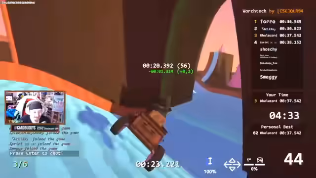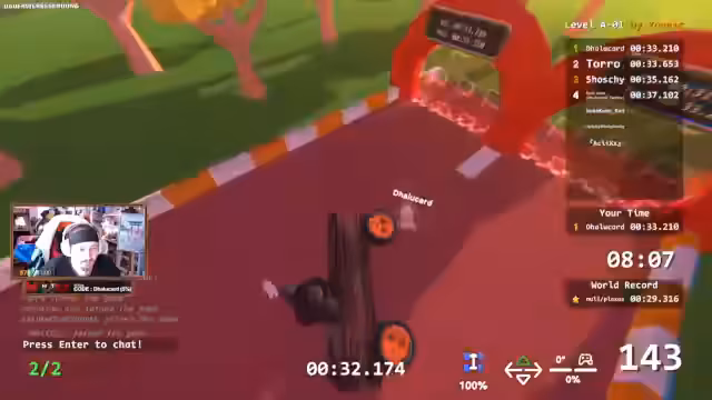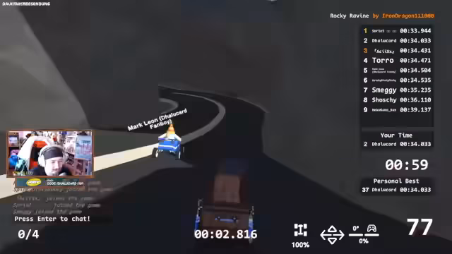 03:09:17Der Streamer wechselt zum Spiel Zeepkist und veranstaltet ein Zeitfahren auf einer speziellen Strecke. Er und seine Zuschauer versuchen, Bestzeiten zu fahren und analysieren zusammen Fahrtechnik und mögliche Abkürzungen. Die Diskussionen drehen sich um die Physik des Spiels, perfekte Landungen und den optimalen Schwung in Kurven. Es werden Tipps ausgetauscht, um die Strecke zu meistern und sich zu verbessern. Das Ziel ist es, die schnellste Zeit zu erzielen und die Feinheiten der Streckenoptimierung zu verstehen.