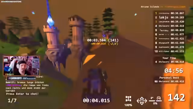 03:40:12Der Streamer analysiert eine anspruchsvolle Zeepkist-Strecken, auf der selbst minimale Fehler zu Zeitverlusten führen. Er diskutiert mit seiner Community, wie man durch präzises Fahren, aggressives Kurvennehmen und das Ausnutzen von Geschwindigkeitselementen die Zeit verbessern kann. Es werden verschiedene Linien und Abkürzungen diskutiert, wobei Fokus auf dem Schwungmanagement und der Beherrschung der Streckenphysik liegt. Der Streamer bemerkt, dass eine gute Zeit auf dieser Strecke eine hohe Kunst ist und sehr viel Übung erfordert.