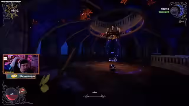 05:08:27Nach den intensiven Rennen wechselt der Streamer zu einem neuen Spiel. Es wird ein Lobby-System aufgemacht, um gemeinsam mit der Community ein Spiel zu starten. Das Ziel des Spiels, das an 'Shadow Frankie' erinnert, wird erklärt: Man hat drei Nächte Zeit, so viele Dinge wie möglich zu zerstören, während Monster einen daran hindern. Es kommt zu technischen Problemen beim Start des Spiels und die Spieler müssen ihre Ausrüstung, wie Zauberstäbe, erst besorgen und verstehen lernen.