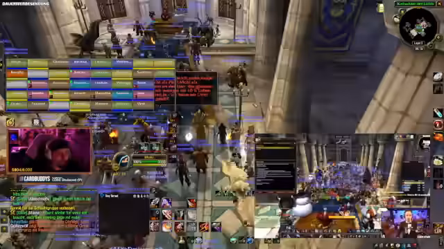 06:53:39Alle Streamer treffen sich in der Kathedrale des Lichts für das offizielle Gildentreffen. Es gibt Diskussionen über die Organisation des Raids und das Portalieren nach Mulgur für einen World Buff. Die Mitarbeiter der Woche, Han und Goldgoblin, werden für ihre außergewöhnliche Unterstützung in der Gilde ausgezeichnet. Vor der Ankündigung der Raid-Gruppen gibt es eine Schweigeminute für verstorbene Gildenmitglieder und eine kleine musikalische Einlage.