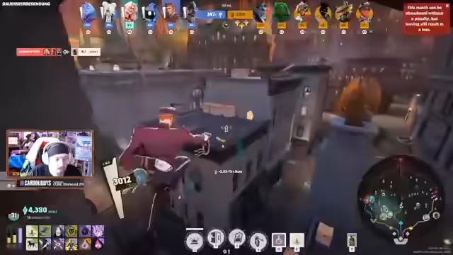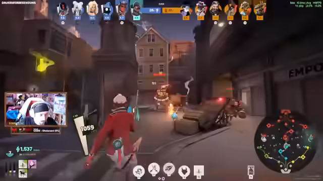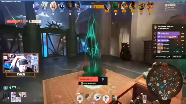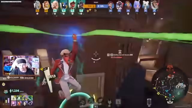 06:20:37Der Stream beginnt mit einem hektischen Kampf im Deadlock-Modus. Der Streamer ist in Bedrängnis, hat nur noch 4 HP und muss Regidier wiederbeleben. Es herrscht großer Andrang um den Extractor, den die Spieler jedoch meiden wollen. Der Kampf ist geprägt von schnellen Positionierungen wie 'Up Dog', 'Blink' und 'Swap', wobei der Streamer von einem gegnerischen Spieler, der 'Arschwuppe' genannt wird, attackiert wird. Ein Versuch, den Gegner mit einem Teleport einzusperren, schlägt fehl, was zu viel Frust und Gelächter führt.