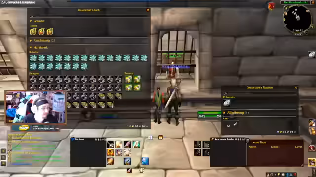 00:05:52Die Planung für den Scholomance-Run beginnt, wobei sich logistische Probleme zeigen. Streamer und Gruppenmitglieder müssen Inventarplatz freimachen, was zu Diskussionen über das Teilen von Gegenständen und die Verteilung an die Gildenbank führt. Ein Gruppenmitglied ist zu spät, was zu einer Verzögerung des Runs führt und die Notwendigkeit guter Organisation unterstreicht.