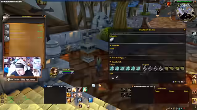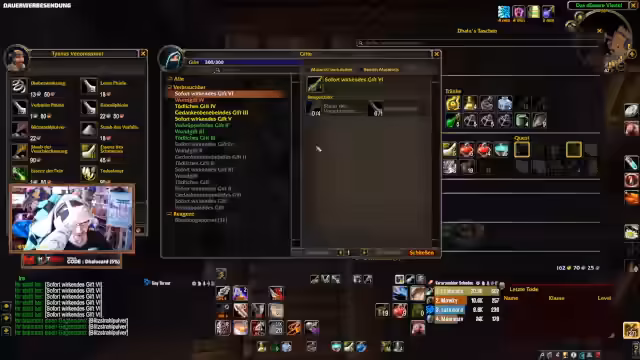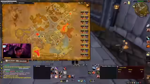 01:08:32Das Management der Gildenbank wird als positives, wenn auch memehaftes, Erlebnis beschrieben, das Freude bereitet, besonders für Ordnungsfälle. Im Fokus stehen das Craften von Tränken und das Farmen von Materialien wie Akkanit Barren und Schwarze Lotus. Es gibt organisierte Abläufe, bei denen Spieler Materialien sammeln, eintragen und verteilen. Die Herausforderung ist der begrenzte Inventarplatz, was zu kreativen Lösungen wie dem Postsystem führt.