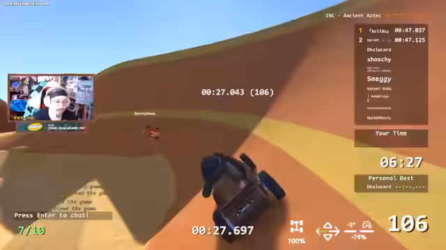 04:44:14Nachdem der Streamer bemerkt hat, dass er ständig knapp hinter einem anderen Spieler namens Asics liegt, setzt er seinen Drill fort. Er trainiert intensiv, um die Top-Fahrer herauszufordern und den Strecken-Kniffe auf die Spur zu kommen. Währenddessen tauchen vermehrt technische und performative Probleme auf, wie zufälliges Bouncen von der Strecke und unvorhersehbares Verhalten des Charakters, was die Strecken noch herausfordernder macht. Die Stimmung ist geprägt von Ehrgeiz und der ständigen Anstrengung, trotz Rückschläge eine bessere Zeit zu erzielen.