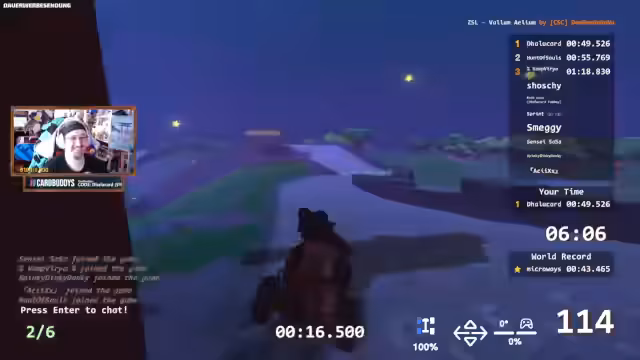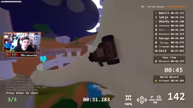 04:32:14Der Streamer konzentriert sich wieder voll und ganz auf das Erzielen guter Zeiten in den verschiedenen Strecken. Nach einem missglückten Versuch vermeldet er eine Zeit von 46,5 Sekunden auf einer Map, was er als sehr gut ansieht. Es folgt eine hitzige Diskussion mit Zuschauern und anderen Spielern über die korrekte Streckenführung, Abkürzungen und die Bewertung der Zeiten. Ein wiederkehrendes Problem ist das Verpassen von Checkpoints, was zu erheblichen Zeitverlusten und Frustration führt, insbesondere als der Streamer erkennt, dass seine Community ihn Punkte kostet, indem sie ihn überholt.