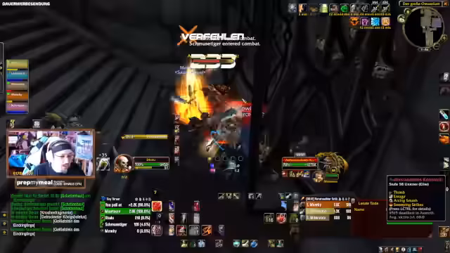 00:11:34Während des Scholomance-Runs gibt es Herausforderungen im Gameplay, insbesondere beim Tanken und der Aggro-Verwaltung. Es kommt zu Diskussionen über die Gruppenkomposition und die Rolle der einzelnen Spieler. Der Streamer ist mit der Performance der Gruppe unzufrieden und betont die Bedeutung von guter Koordination und dem Bedienen von Fähigkeiten.