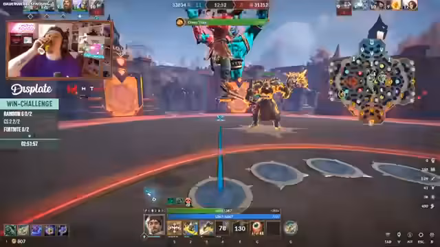 08:55:47Die anfänglichen Gegner werden fälschlicherweise als Bots eingestuft, was schnell als falsch identifiziert wird. Dalu gibt Brammen und den Zuschauern grundlegende Erklärungen zu den Fähigkeiten seiner Figur Karma, insbesondere zu seinem Damage-Buff und seiner Ultimate-Fähigkeit. Das Gameplay wird als visuell eindrucksvoll und actiongeladen beschrieben, mit taktischen Elementen wie Portalen und Unverwundbarkeitszonen auf bestimmten Kartenarealen.