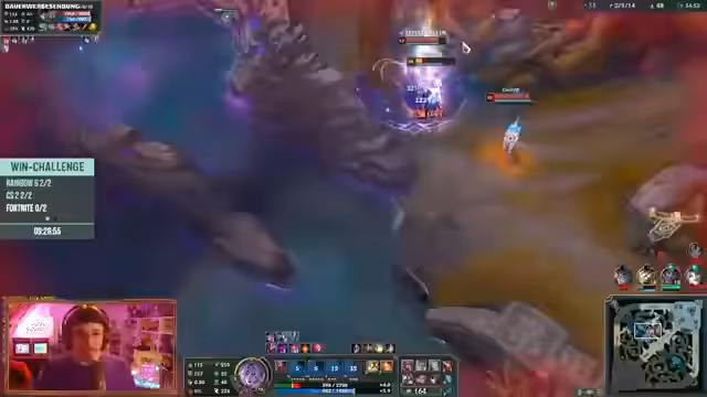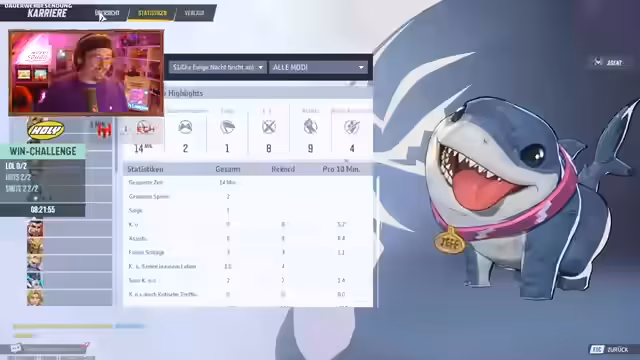 05:59:19Das Team gewinnt ein letztes, entscheidendes Match und sichert sich damit den Sieg in der aktuellen Runde der Win Challenge. Anschließend wird die Leistung des Teams und auch die des starken Gegners analysiert. Ein Gegner wird für sein exzellentes Spiel und seinen hohen Schaden gelobt, dessen Spielstil an ein Aimboard erinnert. Die Streamer zeigen Respekt, auch wenn sie mit der Niederlage konfrontiert wurden. Die Teamdynamik ist trotz der vorherigen Spannungen wieder entspannt, und man diskutiert humorvoll über ihre Spielzeit und die damit verbundene Erschöpfung.