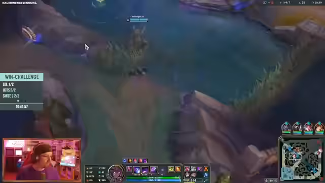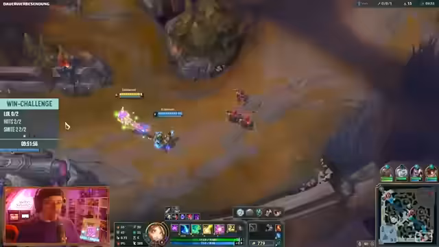 09:17:47Die Streamer starten ihre League of Legends-Win-Challenge mit einer anfänglichen technischen Unterbrechung und einem Neustart des Computers. Es gibt eine Diskussion darüber, warum sie Quickplay anstelle von Ranked spielen, da Ranked erst ab Level 10 verfügbar ist und eine hohe Rangdifferenz erfordert. Sie argumentieren, dass sie als Anfängerteam in Ranked gegen überfordert wären und sich gegenseitig als 'Penisnasen' bezeichnen.