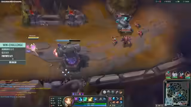 10:16:31Obwohl das erste Spiel verloren ging, bleibt die Motivation hoch. Sie planen sofort ein zweites Match und überlegen, ihre Rollen zu tauschen, um neue Strategien auszuprobieren. Brammen wechselt von der Top-Lane in die Bot-Lane, während der Streamer nach Alternativen wie Morgana für die Top-Lane sucht. Das Ziel bleibt klar: Siege sichern und die Win-Challenge meistern, mit einem Fokus auf bessere Kommunikation und taktische Disziplin.