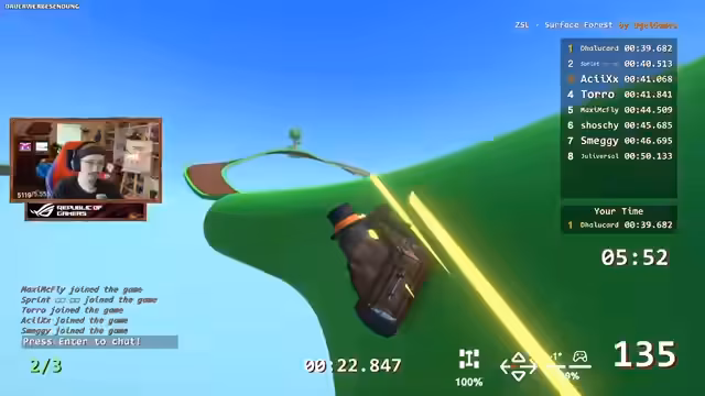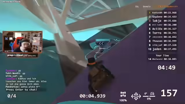 00:28:14Während des Streams wird eine mögliche Abkürzung auf den Strecken entdeckt, die mehrere Sekunden Zeit sparen könnte. Die Spieler analysieren ihre Laufzeiten und versuchen herauszufinden, wie einige Teilnehmer so viel schneller sind. Es gibt Diskussionen über die importance von Checkpoints, Geschwindigkeitserhaltung auf geraden Abschnitten und das Vermeiden von Unfällen.