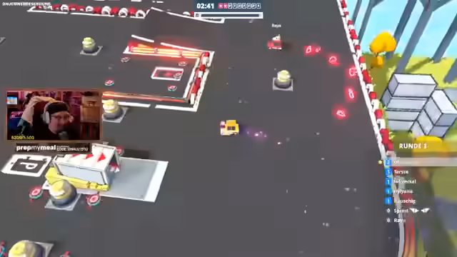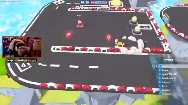 02:06:25Eine der letzten Runden wird zur Verfolgungsjagd, da eine Rakete die Spieler ins Visier nimmt. Die Stimmung ist hoch, als die Teilnehmer versuchen, der Rakete zu entkommen, während sie gleichzeitig auf der Suche nach den letzten Parkplätzen sind. Es kommt zu spektakulären Kollisionen und hetzischen Auseinandersetzungen zwischen den Spielern. Der Streamer und seine Community scheinen in ihrem eigenen wilden Rausch zu sein, der mehr durch den Zeitdruck und den Humor geprägt ist als durch echten sportlichen Ehrgeiz.