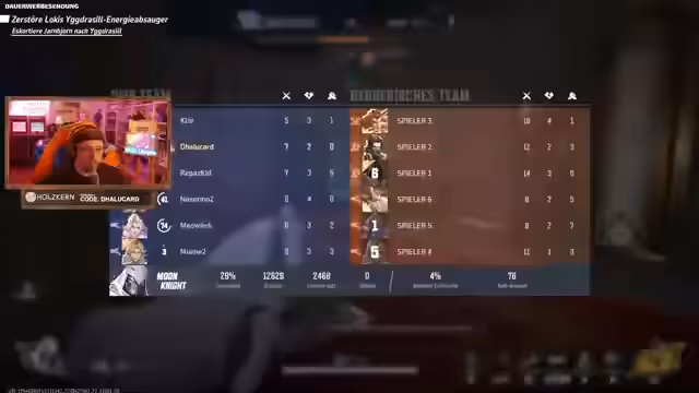 04:13:52Im Ranking-Modus von Marvel Rivals kämpft das Team in der Diamond-Liga gegen hochklassige Gegner. Es kommt zu intensiven Auseinandersetzungen, wobei besonders der Charakter Hulk auffällt, der als solistisch spielender Spieler das Team massiv unter Druck setzt. Der Streamer berichtet von Problemen im Teamplay und kritisiert die wiederholte Nichteinsatzfähigkeit von Unterstützern, was die Position des Teams erheblich schwächt. Während des Spiels werden strategische Entscheidungen getroffen und die Positionierung der Charaktere ständig angepasst, um den gegnerischen Angriffen standzuhalten und den Sieg zu sichern.