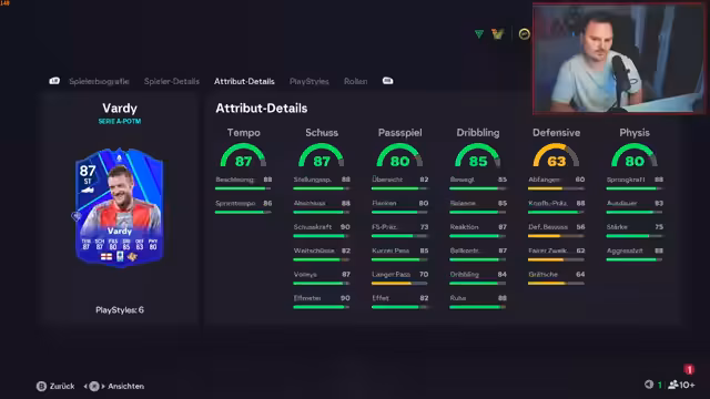 02:33:42Der Streamer berichtet ausführlich über seine gesundheitlichen Probleme der letzten zwei Wochen, darunter eine Bindehautentzündung, Grippe und Kopfschmerzen. Er kritisiert das Matchmaking von Rivals und die defensive Dominanz im Spiel. EA wird aufgefordert, die Defensiv-KI und die Effektivität von Formationen wie Doppel-Dreieck zu nerfen, um das Offensivspiel wieder attraktiver zu machen. Die Körperbau-Systeme bei einigen Karten wie Ulysee werden als besonders gut gelobt.
