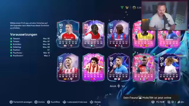 00:36:06Der Streamer bewertet verschiedene Spieler-Evolutionen und wie sich diese auf deren Spielstil auswirken. Er erwähnt Havertz, der durch eine neue Evo gerettet werden könnte, und diskutiert die optimale Wahl zwischen Karten wie Barlow und Sokates. Balotelli wird als vielversprechende, aber selten werdende Karte gesehen, während Thuram Finesse-Shot als ideal gilt. Auch die Statistiken von Spielern wie Rooney und Reus werden analysiert, um deren Wert im Spiel zu bestimmen.