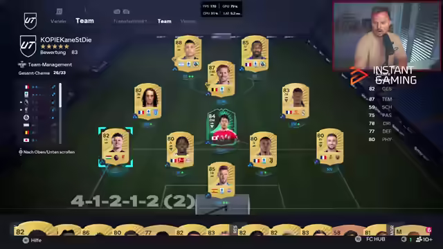 01:32:44Nach einer verlorenen Streak nimmt der Streamer taktische Anpassungen vor, darunter das Umstellen auf kurze Pässe und die Zuweisung von Spielern zu bestimmten Rollen wie Absicherung und Allrounder. Es wird überlegt, die Positionen von Spielern zu tauschen, um die Seite besser abzusichern. Der Streamer bedankt sich für Resubs und kündigt an, sich etwas zu trinken zu holen. Ein kurzer Blick auf den Markt zeigt potenzielle Spieler wie Pichon, Oun und Van Nistelrooy, wobei auf fallende Preise gewartet wird. Die Jones wird als stabil eingeschätzt, und Donovan als mögliche Option für die falsche 9. Der Streamer äußert sich noch unschlüssig über die Raute-Formation, obwohl der Aufbau damit relativ cool ist. Es wird festgestellt, dass die letzten Gegner wenig geskillt haben. Die Idee von einem ganz offensiven Außenverteidiger wird angesprochen.