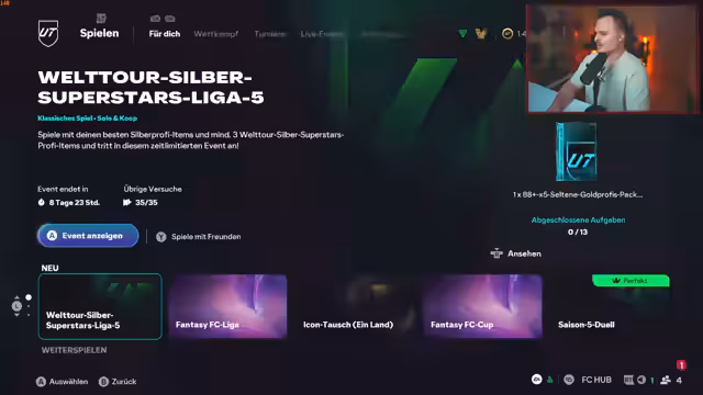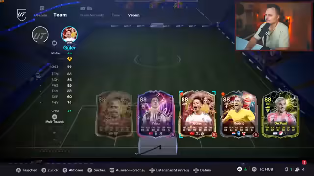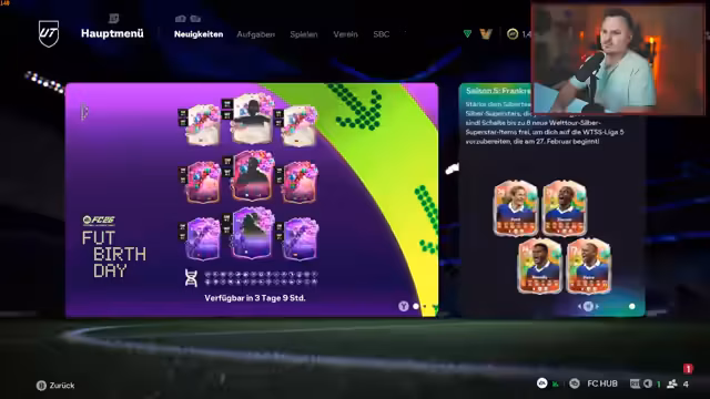 00:20:16Im Zuge der Vorstellung der neuen B-Day-Karten für FIFA Ultimate Team, unter anderem Spieler wie Maradona, Toni Kroos und Basili, wird die Vorfreude auf bestimmte Karten wie Perisic und Vardy deutlich ausgedrückt. Gleichzeitig werden einige Kartenwahl als für den Streamer unverständlich kritisiert. Nach der Analyse der Karten geht es praktisch sofort zum nächsten Punkt, dem Start der neuen Gauntlet-Runde, wobei der Streamer spezifische SBCs wie das Ultimate Duell und das World Horn Silver als zu aufwendig für den begrenzten Zeitrahmen ablehnt.