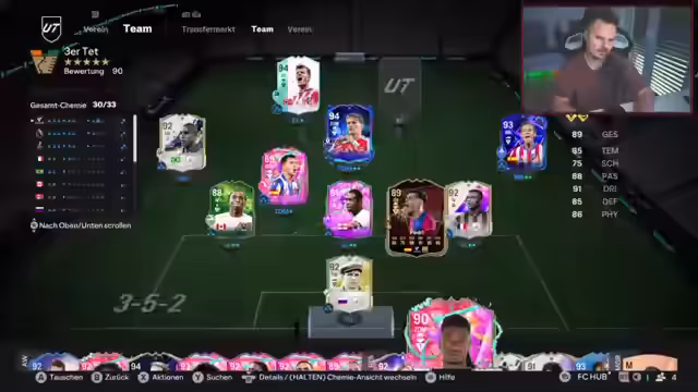 01:39:48Die Zusammenfassung beinhaltet mehrere Live-Spiele, in denen die getestete 3-5-2-Formation mit der 3er-Kette auf ihre Tauglichkeit geprüft wird. Der Streamer erlebt sowohl Erfolge als auch frustrierende Niederlagen, die defensiven Schwächen der Formation offensichtlich werden. In den Partien werden Spieler wie Sirloin und Tyrann bewertet, wobei deren Positionierung und Wirksamkeit im Spiel kritisch hinterfragt werden. Die Spiele dienen als direkte Praxiserfahrung zur Weiterentwicklung der Taktik.