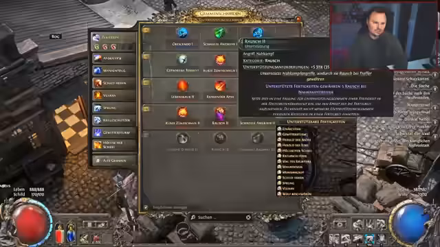 00:25:15Tiefgehende Analyse der Skill-Entwicklung mit Fokus auf Rausch-Mechaniken. Der Streamer optimiert Angriffsgeschwindigkeit, Detonationszeit und Kosteneffizienz von Fähigkeiten. Er diskutiert die Symbiose zwischen physischem Schaden, Elementarschäden (insbesondere Kälte) und Defensivwerten wie Rüstung. Passivbaum-Punkte werden strategisch für Schadensmultiplikatoren und Überlebensfähigkeiten verteilt, wobei 'Rausch' als zentraler Mechanik für Schadensboosts identifiziert wird.