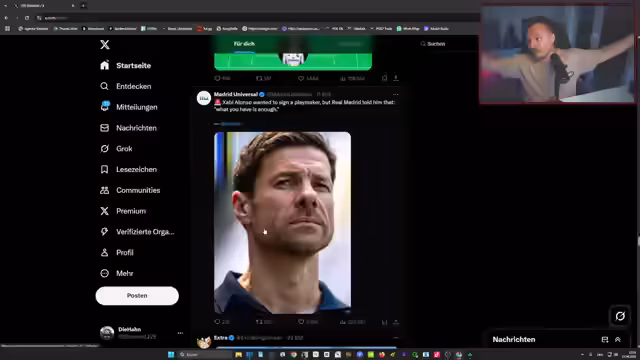 03:49:33Der Streamer gibt einen Überblick über aktuelle Transfer-News. Er bestätigt, dass Nico Williams Barcelona endgültig den Vorzug vor Bayern München gegeben habe. Er berichtet über eine mögliche Einigung von Gerard Deulfeu mit Bayer Leverkusen und erwähnt, dass Adama Traoré aus der La Masia von Barcelona zurückgekehrt sei. Des Weiteren spricht er über Arda Güler als einzigen Spielmacher bei Real Madrid und diskutiert die Gerüchte um einen möglichen Wechsel von Gavi von Barcelona zu finanziellen Abschöpfung.
