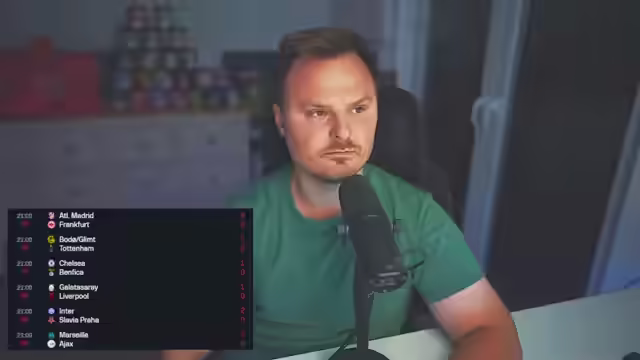 00:21:00Der Streamer startet den Abend mit dem Gauntlet-Modus und einem Champions League Watchalong. Er bedankt sich für den Support und erwähnt anstrengende Tage zuvor. Es wird geplant, zügig die Teams für die Gauntlet Games zusammenzustellen, wobei der Reset um 19:00 Uhr berücksichtigt werden muss. Es folgt eine Diskussion über Gaming-Laptops, wobei betont wird, dass ein PC oft das bessere Preis-Leistungs-Verhältnis bietet, es sei denn, man hat hohe finanzielle Mittel. Der Fokus liegt auf CPU-Leistung für FM-Spiele. Tipps zum Verteidigen in FIFA werden gegeben: ruhig bleiben, passiv agieren und im richtigen Moment zuschlagen. Es wird überlegt, Nico Pass mitzunehmen, da es ein Verbrechen wäre, dies nicht zu tun und die beste Strategie für die letzten Slots im Spiel zu wählen. Die meisten Leute werden mit ihrem besten Team auf den letzten Slot gehen, daher ist es am sinnvollsten, die besten Teams auf den vorletzten und letzten Slot zu legen.