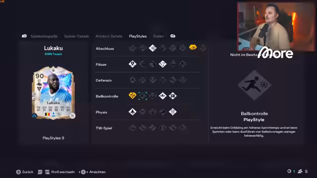00:52:41Der Streamer wendet sich aktuellen Kontroversen im Fußball zu, wie den Vorwürfen gegen Dani Alves, und betont die Unklarheit der Sachlage. In der FIFA-Diskussion äußert er seine Meinung, dass die R9-Karte reiner Fanservice sei und für kompetitive Spieler weniger relevant als gut optimierte Evos. Er preist seinen eigenen hochgezüchteten Lukaku, der ohne 'Finesse-Shot' extrem stark spiele und Spaß mache, was die Vielfalt der Spielstile im aktuellen FIFA unterstreicht.