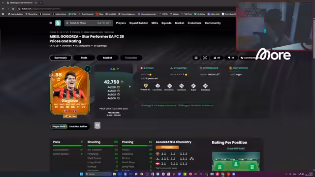 00:03:37Der Stream startete mit technischen Problemen, da die OBS-Verbindung kurzzeitig unterbrochen war. Nach der Wiederherstellung der Verbindung fragte der Streamer Goxon, ob er sein Gameplay über Discord streamen und ihm einen Gefallen tun könnte, indem er ein bestimmtes Team mit Lukaku, Pogba und Ness spielt. Es gab eine kurze Diskussion über die neue Evo-Karte von Openda und andere Geronimo-Karten, die in letzter Zeit herausgekommen sind. Der Streamer erwähnte, dass EA in Bezug auf diese Evos gute Arbeit leistet, obwohl das Spiel in anderen Aspekten seltsam sei. Er bat Goxon, die Ness-Karte auszuprobieren und die Einstellungen zu finden, während er selbst auf Discord wartete. Die Preise für bestimmte Karten wie Kambiaso wurden kurz angesprochen, und der Streamer bemerkte, dass der Markt für diese Karten sehr aktiv sei.