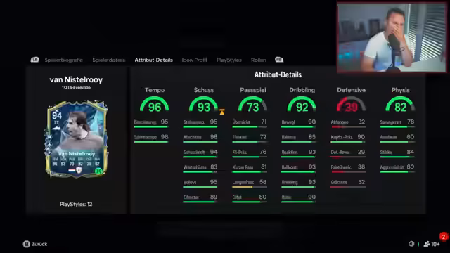 01:14:10Es wurde eine detaillierte Analyse verschiedener Spielkarten im FIFA Ultimate Team Modus durchgeführt. Es ging um mögliche Upgrades, speziell die Karten von Spielern wie Götze, Van Nistelrooy und Sokrates, wobei deren Statistiken wie Pace, Dribbling und Physis im Fokus standen. Der Streamer diskutierte über den Wert von Evolutionskarten (Evos) und das Potenzial, Spieler wie Morgan oder Barde zeitgemäßer zu gestalten. Auch die Frage, ob sich bestimmte Spielerkarten wie Anthony noch lohnen, wurde erörtert. Letztendlich standen die Möglichkeiten im Vordergrund, durch gezielte Upgrades oder neue Spielstile (Playstyles) die Karten zu verbessern.