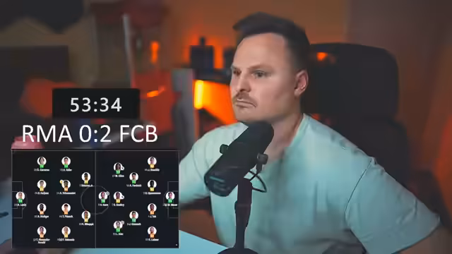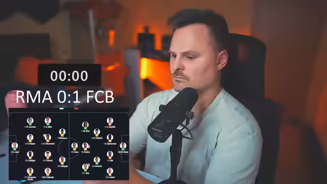 00:09:01Der Stream beginnt mit dem Vorfeld des Champions-League-Duells zwischen Real Madrid und Bayern München. Der Kommentator ist gespannt und aufgeregt und erwähnt, dass sein Kollege Mario im Stadion ist, während das Spiel bei Prime Video übertragen wird. Er diskutiert die historische Bedeutung des 'Klassikers' und gibt an, ohne Favoriten zu sein, aber zu hoffen, dass Bayern stark auftritt und ein gutes Match abgibt. Persönliche Tipps und ein witziger Vergleich mit einem 'Türken-Temperament' bei Carreras runden den ersten Abschnitt ab.