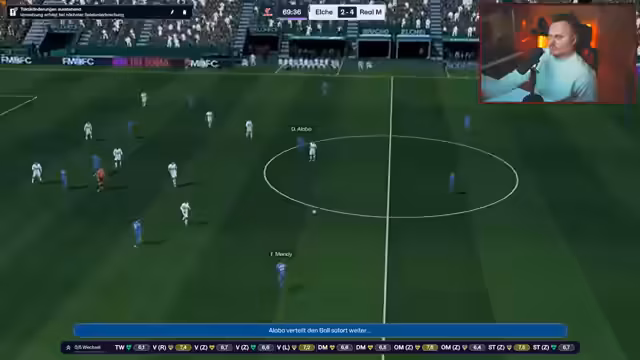 05:13:53Zurück im Football-Manager-Stream steht ein Champions-League-Spiel im Fokus. Real Madrid gewinnt mit 5:1 gegen Bodo/Glimt, und der Streamer lobt besonders Spieler wie Arda Güler, der zum "Spieler des Spiels" gekürt wird. Das Spiel wird als "Mannschaftsansprache" genutzt, um die Moral zu heben, und es wird diskutiert, wie wichtig ein solcher Kantersieg für das Rückspiel ist. Der Streamer erwähnt auch die FIFA-Rival-Series, in der er erfolgreich bis in die Elite-Division aufgestiegen ist, und bewertet die gezeigte Taktik 4-1-2-1-2 breit als eine gute, aber gefährliche Variante.