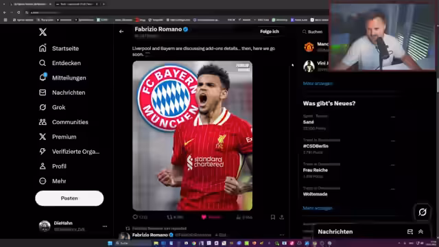 00:23:24Der Streamer analysiert den Transfer von Luis Diaz zum FC Bayern München. Er ist der einzige Mensch auf diesem Planeten, der den Transfer weder zu alt noch zu teuer findet und betont dessen Stärken in der Strafraumbesetzung, ein Problem, das der FC Bayern in den letzten zwei Jahren hatte. Diaz kann als Flügelspieler den Strafraum besetzen und wäre laut Streamer eine Lösung für Bayerns Probleme gegen Topmannschaften.