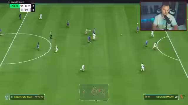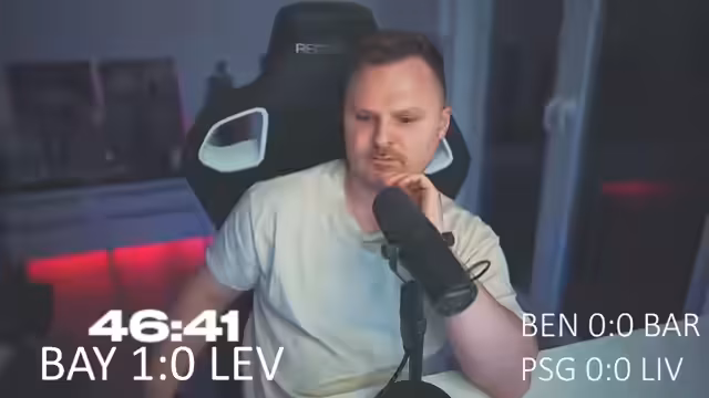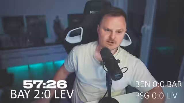 03:08:47Der Streamer berichtet von seinen Erfahrungen in der Elite-Division, wo er in den letzten Tagen Schwierigkeiten hatte, da fast alle Gegner das 4-2-1-3-System anwandten und dadurch zu einer Hälfte der Partien zu 50-50-Duellen wurden. Er wechselt dann zu einem Fußball-Livestream, bei dem er das Spiel zwischen Bayern München und Bayer Leverkusen beobachtet. Dabei kommentiert er, dass München 100% für einen Sieg vorne sei und das Spiel bereits zu den Gunsten der Münchner entschieden wirke, da Leverkusen sich selbst sabotiere.