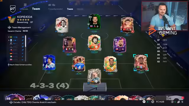 01:34:36Der Streamer absolviert das Live-Event mit einem Team, das aus eigenen, starken Karten besteht, wie einem als maßlos unterschätzten Rollet im ZOM und einem stabilen Gnabry. Es wird die Erfahrung geteilt, dass solche Karten, die Gegner nicht einschätzen können, eine enorme Wirkung haben. Parallel dazu werden die anstehenden SBCs, wie die mit Dante, vorbereitet und die Notwendigkeit eines belgischen Profis und eines Tors in fünf separaten Partien erwähnt. Der Streamer experimentiert mit verschiedenen Spielern und Positionen, um die Aufgaben zu erfüllen.