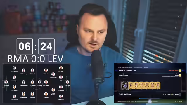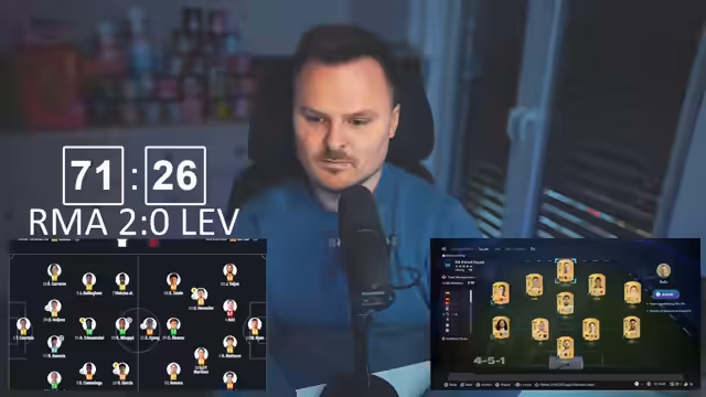 00:21:11Der Streamer begrüßt das Publikum und gibt an, trotz Erkrankung – begleitet von Schüttelfrost und Fieber – den Stream fortzusetzen. Er kritisiert die Entscheidung, Steffen Topmüller zu entlassen, und bezeichnet dies als geisteskrank. Anschließend diskutiert er EA-Spielereignisse wie ein zufälliges POTM-Tor bei Dortmund und kritisiert eine vermeintliche Copy-Paste-Fehler bei den Totti-Evolutionen, die zu falschen Belohnungen führten.