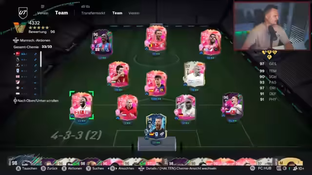 02:04:41Der Fokus liegt auf dem Team-Aufbau für den aktuellen Evo-Cup. Der Streamer versucht, seine bestehende 4-3-3-Mannschaft zu optimieren, indem er Spieler analysiert und Positionen austauscht. Benzema, obwohl stark, wird vorübergehend entfernt, um andere Optionen zu testen. Der Fokus liegt auf der Nutzung von Spielern mit 'Artist' als Playstyle. Er bemerkt jedoch technische Schwierigkeiten und Verwirrung bei der Teilnahme am Cup, da seine Evolutions-Spieler nicht korrekt erkannt werden, was auf einen möglichen Bug hindeutet. Trotzdem bleibt er positiv und versucht, das Beste aus der Situation zu machen.