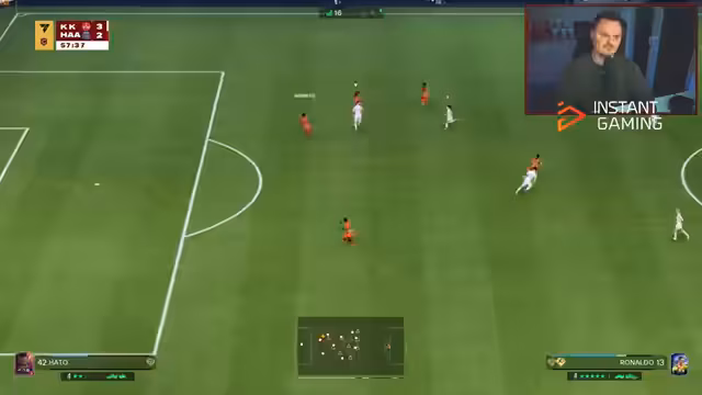 02:30:09Ein intensiver Test des CR7 Players beginnt. In einem 3-3-Remis zeigt die Karte interessante Laufanimationen und gute Finesse-Shots. Allerdings wird CR7 physisch als sehr schwach empfunden; er geht oft zu Boden und lässt sich leicht rempeln. Die geringe Antrittsstat ist das größte Problem, weshalb ein Double-Sturm-Setup mehr Potenzial verspricht als eine Einzelspitze. Die Spielweise fühlt sich durch den Body-Type anders an als bei anderen Spielern.