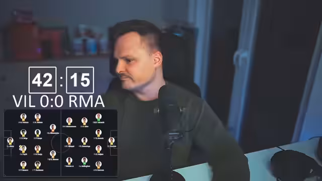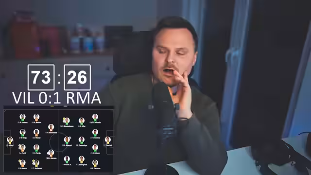 03:35:38Der Streamer schaltet zu einem Live-Spiel von Real Madrid gegen Villarreal. Das Spiel wird als anspruchsvoller und taktisch gezeichneter als das vorherige gegen Monaco beschrieben. Villarreal gefährdet durch schnelle Flanken und Ping-Pong-Spiel den Real-Madrid-Kasten. Die Offensive der Madrilenen wirkt teilweise unkoordiniert, insbesondere wenn Mbappé und Vinícius Jr. den Ball nicht sicher spielen. Ein erfahrener Spieler wie Schümeni würde aktuell fehlen.