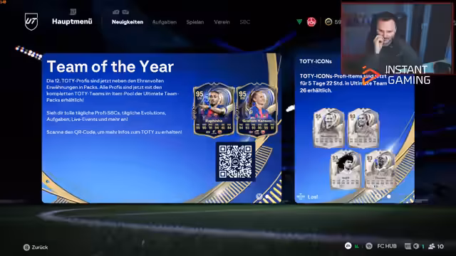 04:15:10Eine längere, teilweise englischsprachige Auseinandersetzung mit der Community befasste sich mit den extrem hohen Preisen für die neuesten SBCs von Cristiano Ronaldo und Lionel Messi. Die Karten würden Preise von über drei Millionen Coins für 90er-Spieler kosten und seien damit teurer als komplette Top-Teams oder einzelne Superstars wie Haaland. Dies wurde als absurd und unangenehm doll empfunden und kritisierte die Preispolitik von EA Sports.