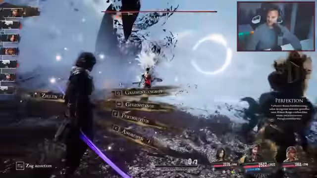 01:34:04Ein spannungsgeladener Kampf gegen einen storyrelevanten Boss beginnt. Nachdem der Streamer den Boss anfangs unterschätzt, wird die Situation kritisch, als ein Teammitglied stirbt und der Boss unerwartete Aktionen ausführt. Ein knappes Missgeschick zwingt ihn, einen Charakter wiederzubeleben. Durch gezielte Aktionen gelingt es dem Team schließlich, den Boss in eine verletzliche Position zu bringen und ihn nach einem intensiven Kampf zu besiegen.