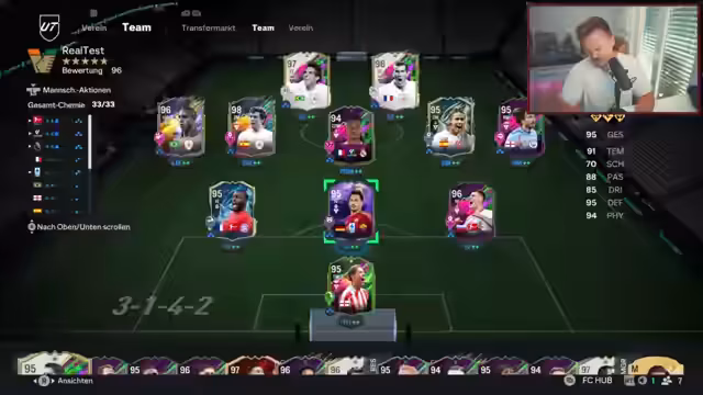 01:31:02Ein großer Teil des Streams beschäftigt sich mit FIFA Ultimate Team, speziell mit SBCs (Squad Building Challenges), Spielergesprächen und Teamzusammenstellungen. Der Streamer probiert verschiedene SBCs, zeigt seinen Fortschritt und äußert sich zu den Karten und Stats der Spieler. Er diskutiert mögliche Spielervarianten für verschiedene Positionen und Teams, wie zum Beispiel bei Real Madrid oder in seiner eigenen Formation. Er spricht auch über die Evolution von Spielern und die strategische Planung in seinem Team.
