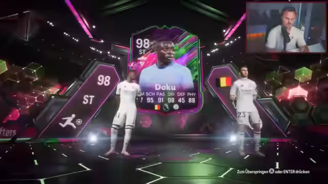 02:18:32Der Streamer erklärt das neue Evolutionssystem im aktuellen FIFA, bei dem man Spielerkarten in Evolutionen einsetzen und deren Werte verbessern kann. Er demonstriert dies am Beispiel einer Costakarte, die er von 88 auf 95 hochspielen kann. Er sieht darin große Potenziale für individuelle Team-Building und erwähnt die Möglichkeit, auch unterklassige Vereine mit starken Spielern aufzuwerten. Gleichzeitig bewertet er bestimmte Karten, wie die Dumfries-Karte, als sehr speziell oder langweilig.